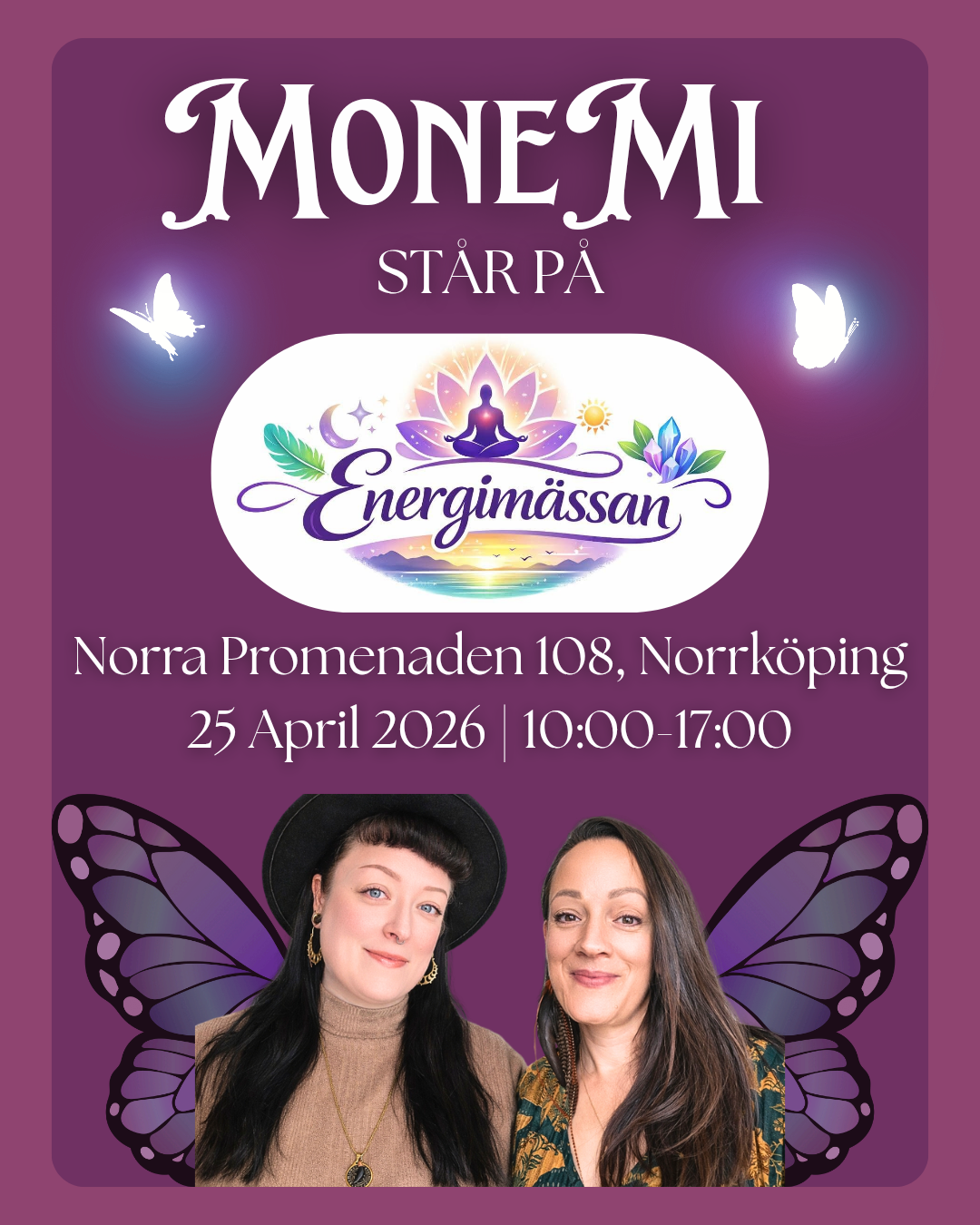 Bakom MoneMi står två nyfikna själar – Anne‑Mi (Entangla) och Simone (Månsyster). Vi delar en glädje i det som uppstår när människor möts i närvaro – i energin, i det osynliga och i det som växer fram inom var och en.